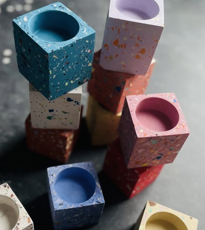 Atelier duo de bougeoirs en terrazzo avec Lyse